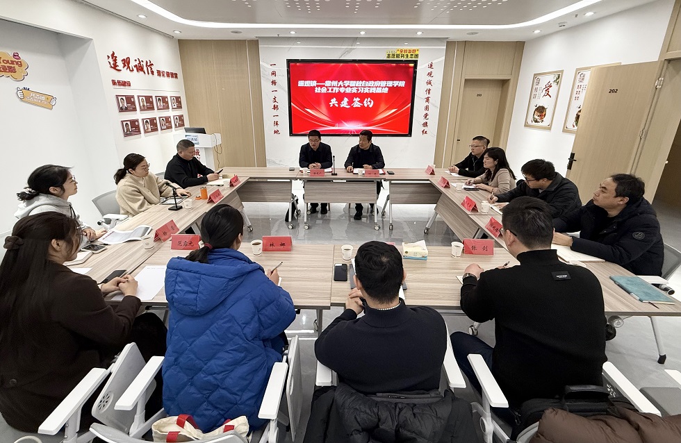 为深入推进校地协同育人,搭建理论与实践深度融合的人才培养平台,近日,色情网 与常州经开区遥观镇举行实习实践基地共建活动,共建专业实习实践基地,以校地联动之力,为基层治理注入专业动能。经开区党群工作部、政法工作部团委分管领导,色情网 党委书记潘道广、党委副书记林娜,社工系教工党支部书记钱志远,专职组织员范露元,院团委工作负责人张剑等参加活动。